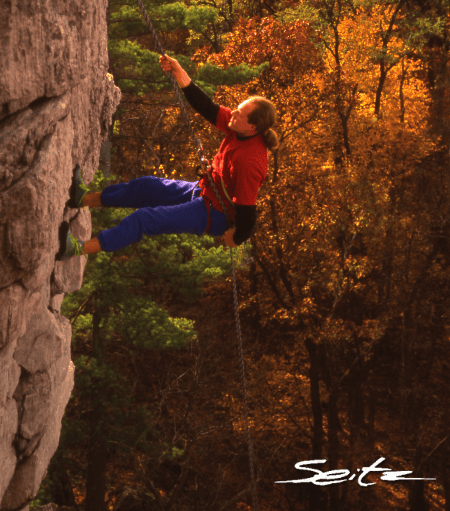 I carefully placed my foot on the next ledge at the summit of Poles Steeple in Pine Grove Furnace State Park, positioning my camera-mounted tripod alongside me. Always mindful of the importance of capturing the best possible photograph with each outing, I stretched down to the next ledge and, on hands and knees, crawled onto it to set up my tripod. The rock climber I had hired as a model was now more secure with his supporting ropes than I was, as I relied solely on the stability of the rocks and my own footing. Once in place, I took numerous photographs—switching between horizontal and vertical compositions and searching for sunbursts behind the climber.